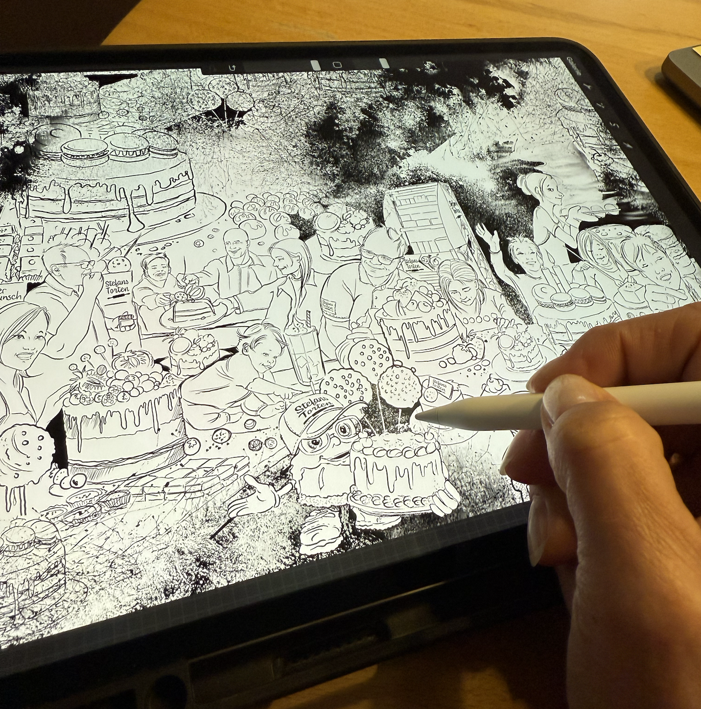 In einer Welt voller KI-generierter Perfektion schaffe ich etwas, das kein Algorithmus je replizieren kann: Echte, handgezeichnete Illustrationen, die schon die Großen in der Werbung immer verwendet haben: Red Bull, Haribo, Zotter und nicht zuletzt Stefens Torten haben ihre Zeichner für ein unverwechselbares Branding. Kunst trifft digital, und das Ergebnis ist nicht nur schön, sondern auch unvergleichlich.